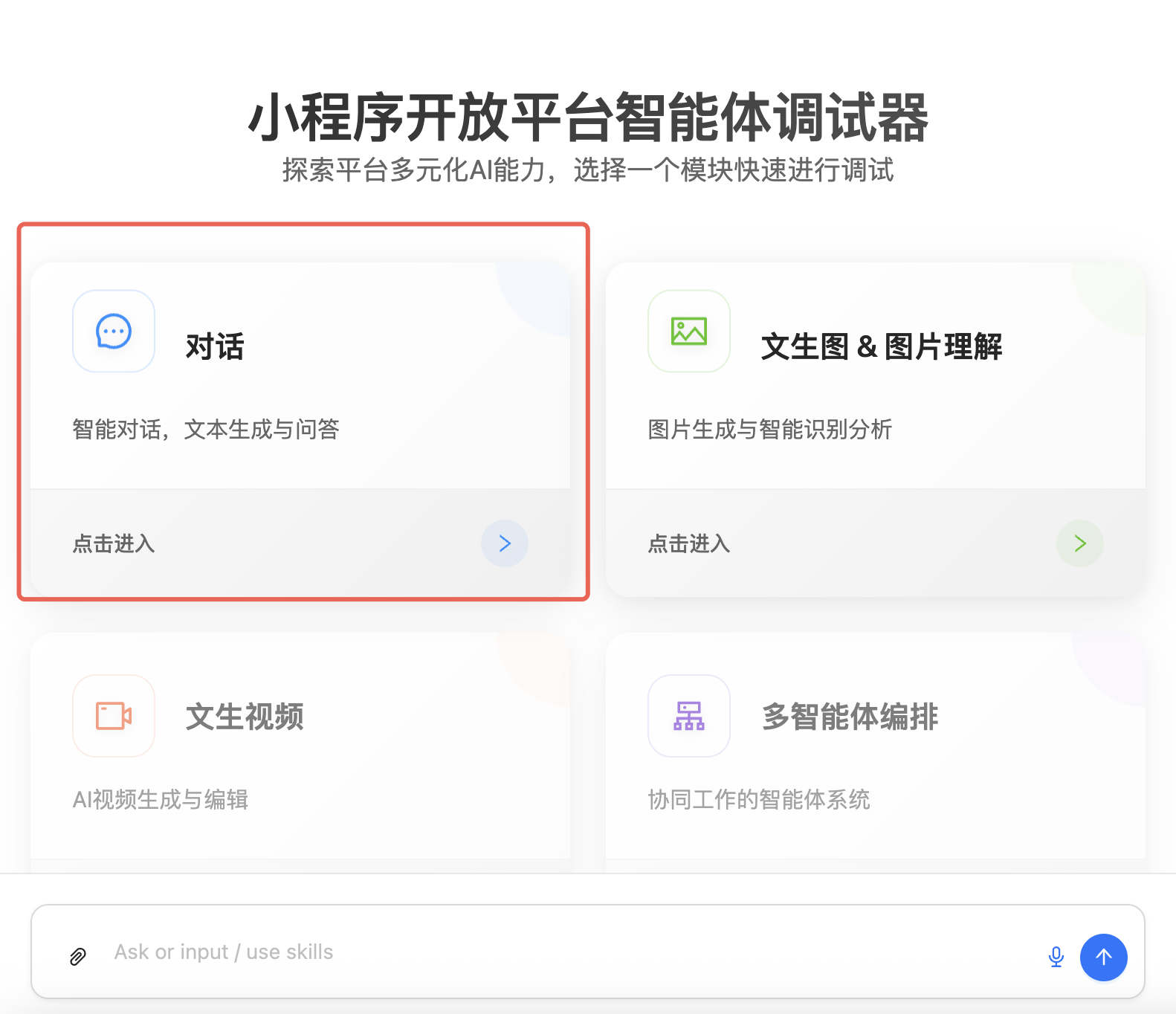 普通模型接口调试用于测试基础的文本对话功能,适用于