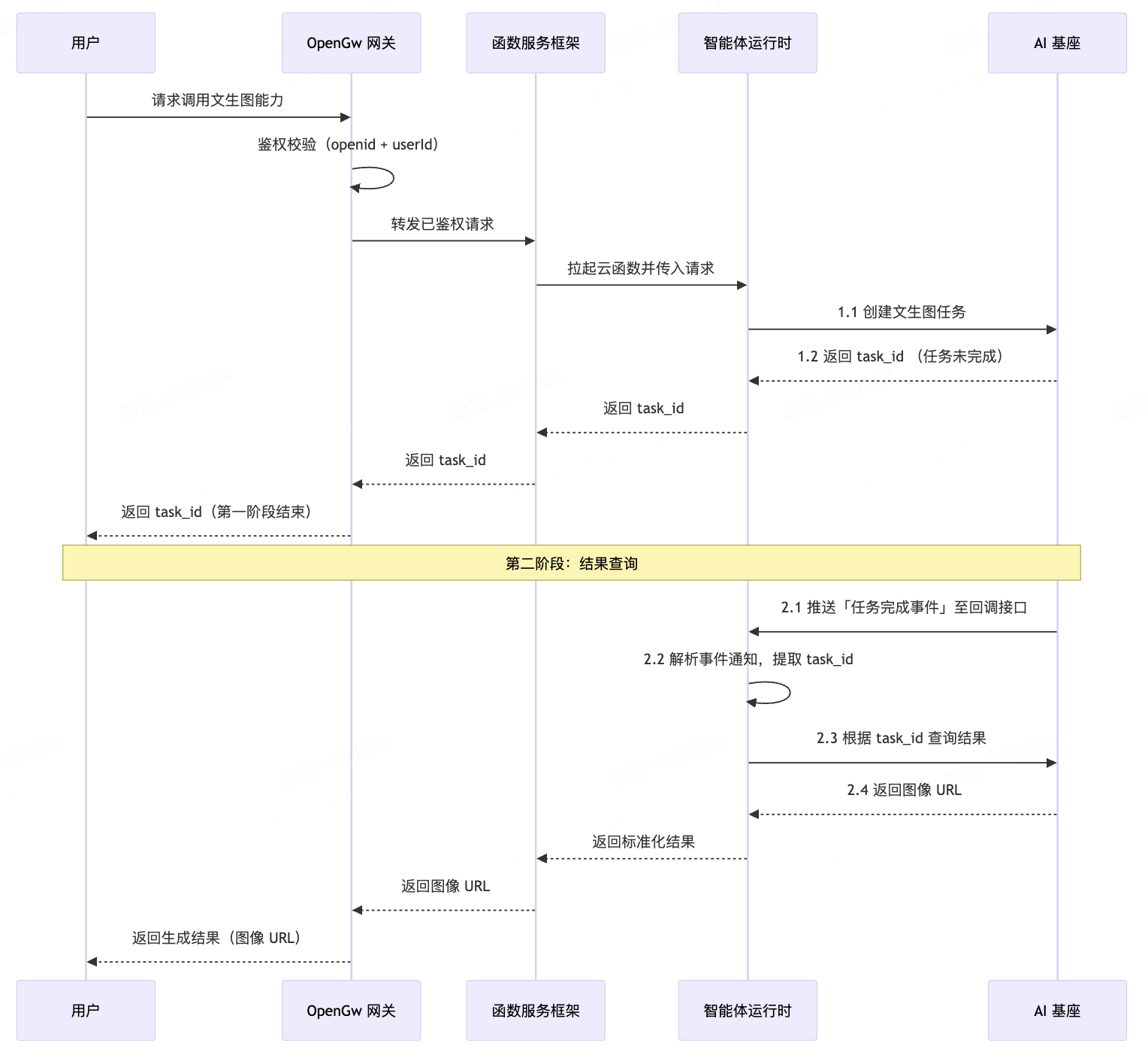 由于多模态模型(如图像生成、视频生成等)因处理时间较长,因此一般多模态模型采用异步调用机制,通常需要调用两个接口完成操作: